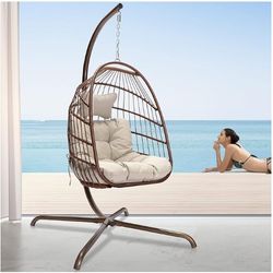 Egg Chair Indoor Outdoor Patio Wicker Hanging Chair with Stand, Swing Egg Chairs All Weather Resistant with Thicken Comfy Cushions, 350lbs Capacity fo$100Chino, CA