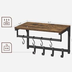 VASAGLE Laundry Room Wall Mounted Coat Rack Shelf w/ Removable Hooks - Brown$26San Gabriel, CA