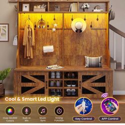Hall Tree with Bench and Shoe Storage, 5-in-1 Entryway Bench with Coat Rack, (Rustic Brown) D-10$139Santa Ana, CA