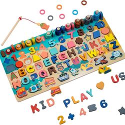 Wooden Alphabet Puzzle All in One Letters Shape Number Matching Board Montessori Educational Early Learning Toy for Preschool Kids$12El Monte, CA