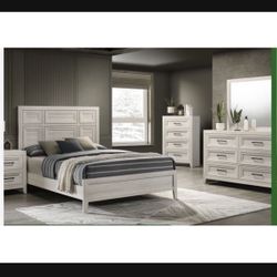 White 4 Piece Bedroom Set - Queen Bed, Nightstand, Dresser & Mirror$700Anaheim, CA