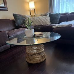 Boho Glass Coffee Table w/ Rattan Base – Coastal / Mid-Century Style$75Monterey, CA
