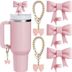 Compatible with Stanley Cup Accessories - 3Pcs 10mm Bow Straw Topper Compatible with Stanley Cup Straw Cover Cap, 2pcs Pink Bow Charms for Stanley 30&$3Castroville, CA