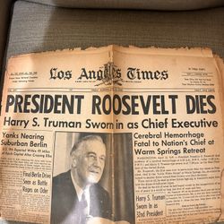 LA Times Newspaper From The Day Roosevelt Died$20Carmel-by-the-sea, CA