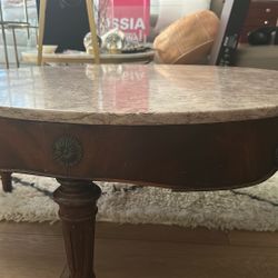 Antique Round Wood Marble Top 2 Tier Accent Table$90Seaside, CA