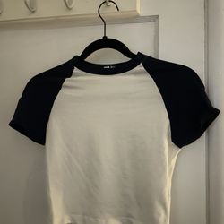 Cropped Short Sleeve Navy Blue And White Shirt Size M$18Salinas, CA