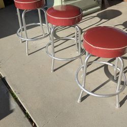 Set of 3 Retro Red Vinyl & Chrome Swivel Bar Stools$200Salinas, CA