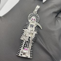 Santa Muerte Grim Reaper Pendant – Real 925 Sterling Silver Black CZ$90Watsonville, CA