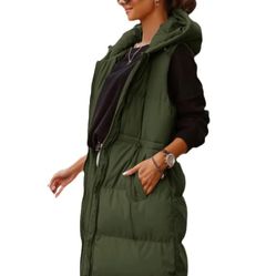 Women's Long Quilted Vest Hooded Maxi Length Sleeveless Puffer Vest Padded Coat$25Santa Cruz, CA