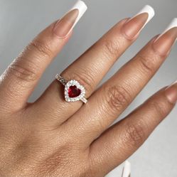 925 Sterling Silver Red CZ Halo Heart Ring | Promise / Love Gift $30Watsonville, CA