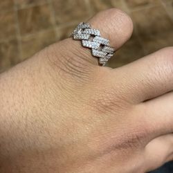 Miami Cuban Link Ring" made with moissanite stones and rhodium-plated sterling silver SIZE 11 Sterling silver $125Seaside, CA