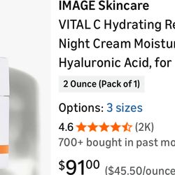 IMAGE Skincare, VITAL C Hydrating Repair Crème, Face Night Cream Moisturizer with Hyaluronic Acid, for Dry Skin, Full-Size, 2 fl oz$40Los Angeles, CA
