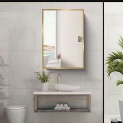 SALE!! 16 in. W × 28 in. H Rectangular Gold Metal Mirrored Medicine Cabinet. Recessed or Surface Mount for Bathroom$60Fullerton, CA