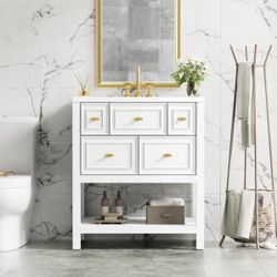 NEW White 30 in. Freestanding Bath Vanity with Resin Sink, 5-Drawers and Solid Wood Frame$300Sierra Madre, California
