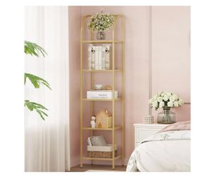 Bookcase Bookshelf, Tempered Glass Arched Bookshelf for More Storage, Slim Shelving Unit for Bedroom, Bathroom, Home Office, Steel Frame, 5 Tier Gold$69Downey, CA