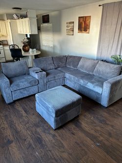 4-Piece Sectional Set W/ Ottoman Reversible Loveseat + Reversible Loveseat W/USB Console & Cup Holders + Corner Wedge + Cocktail Ottoman Color: Dark $699Long Beach, CA