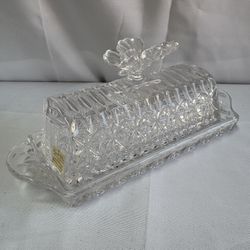 Vintage Czech Crystal Covered Butter Dish With Butterfly Handle Finial $25Rowland Heights, CA
