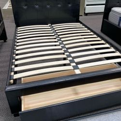 Queen Black Tufted Platform Bed w. Drawer & Orthopedic Mattress Included $359Bell Gardens, CA