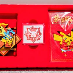 (Exclusive 2026 Only) Pikachu & Friends Magnet, Pikachu Stamp and (6) Pikachu Red New Year Envelopes $15San Gabriel, CA