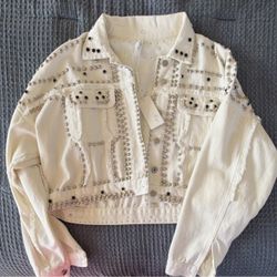 Boho Style Denim White Crop Jacket Size M Prefect For Coachella Or Stagecoach$140Playa Del Rey, CA