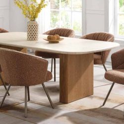 Brand New Travertine Dining Table With 6 Restoration Hardware dupe chairs $1,995Los Angeles, CA