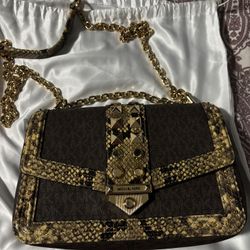Michael Kors SoHo Large Snake Studded Embossed Leather And Logo Chain Purse$260West Hollywood, CA
