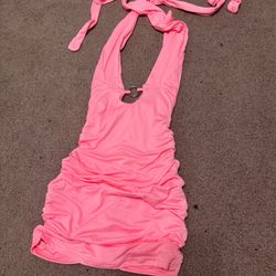 New Small hot neon pink short stretchy halter ruched dress festival rave mini$13Mount Baldy, CA