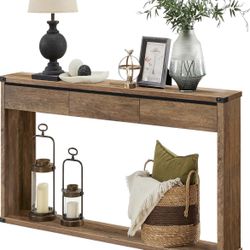 Sofa Console Table, 47.2 Inches Narrow Entryway Table with 3 Drawers, Bottom Shelf, Metal Corners,$60Norwalk, CA
