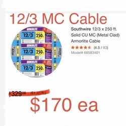 12/3 MC Cable, #12 Wire, Electrician, Electrical Contractor, Building Materials $170Redlands, CA