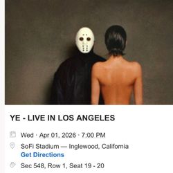 Ye tickets 4/1$500Fontana, CA