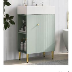 21.6" Green Bathroom Vanity, Combo Cabinet, Bathroom Storage Cabinet, Single Ceramic Sink, Left Side Storage$50Chino Hills, CA