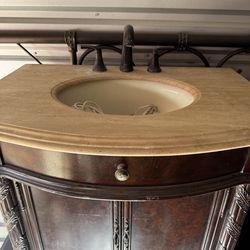 wood and stone bathroom vanity with sink and fixtures$250Big Bear Lake, CA