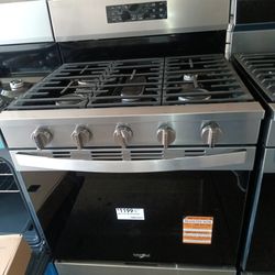 New whirlpool stainless steel gas stove 5 burner$999Glmn Hot Spgs, CA