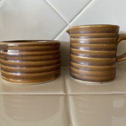 π₯ Vintage 1970s Hall Striped Pottery Creamer #2644 Sugar Bowl #2645 Brown$20Murrieta, CA