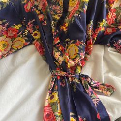 Navy Blue & Floral Silk Knee Length Robe $5Chino Hills, CA