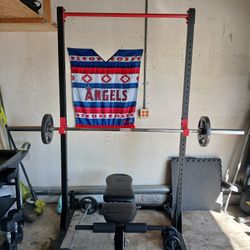 Bench press with 7ft 35lbs bar and 215lbs of Olympic weights and curl bar$300Moreno Valley, CA