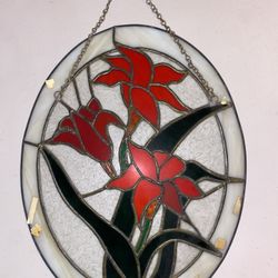 17 x 13” Hang Oval Leaded Glass Flowers Lilies roses Sun Catcher Stained Glass Decor$40Ontario, CA