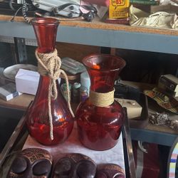 Large Burnt Iran’s Glass Vases Set With Jute Accent Around Neck Base Quality Craft N Barrel $15 Both One U.S. 2ft Tall Other Is About 18” $15Grand Terrace, CA