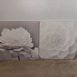 2 Floral Canvas Art Pieces 3D Texture White Flowers$40Perris, CA