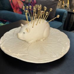 Vintage Horderves Plate With Pig On Cabbage And Holes For Picks Made In Japan$25Hemet, CA