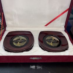 6 VTG Korean najeon chilgi mother-of-pearl inlaid lacquerware dish With Cranes$30Hemet, CA