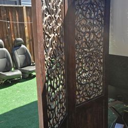 hand-carved wooden room divider partition, typically made of mango wood with an antique brown finish. $300Lake Elsinore, CA