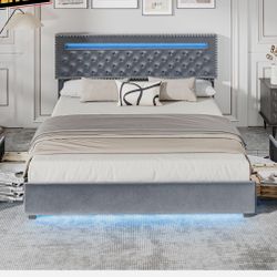 Queen Size Bed Frame with LED Lights Velvet Upholstered Platform Queen Bed$100Chino, CA