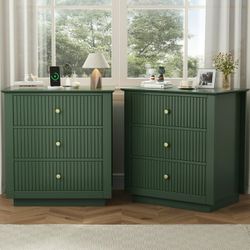 New and ASSEMBLED Nightstand Set of 2, 24" Wide End Table with Storage, Fluted Nightstand with USB Charging Station, Large 3 Drawers nightstand for Be$150Ontario, CA