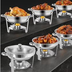 Dishes for Buffet with Glass Lid 5QT, 6 Pack Round Chafer & Warmer Set, Stainless Steel Rolled Rim for Catering Events, Parties, Weddings$100Fontana, CA