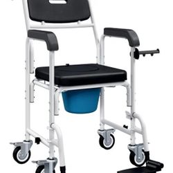 Shower Chair with Wheels, Commodes Wheelchair Toilet Chair with Headrest Padded Seat Flip-up Arm and Foot Rests,Tilt Rolling Shower Chairs for Elderly$70Fontana, CA