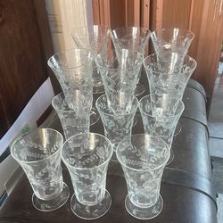 Vintage etched glass water goblets set of 12$50Riverside, CA