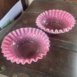 2 Fenton cranberry adolescent hobnail ruffled edged bowls$25Riverside, CA