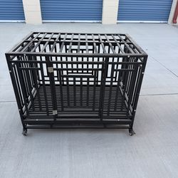 38 inch Heavy Duty Indestructible Dog Crate, Escape Proof Dog Cage Kennel with Lockable Wheels,High Anxiety Double Door Dog Crate,Extra Large Crate In$100Rancho Cucamonga, CA