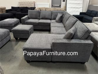 NEW LARGE U Shape Sectional Sofa with TWO Chaise Lounge Set Dark Grey Fabric Ashley Style Discount Furniture Warehouse Lounger Big Couch SALE Black $479Corona, CA